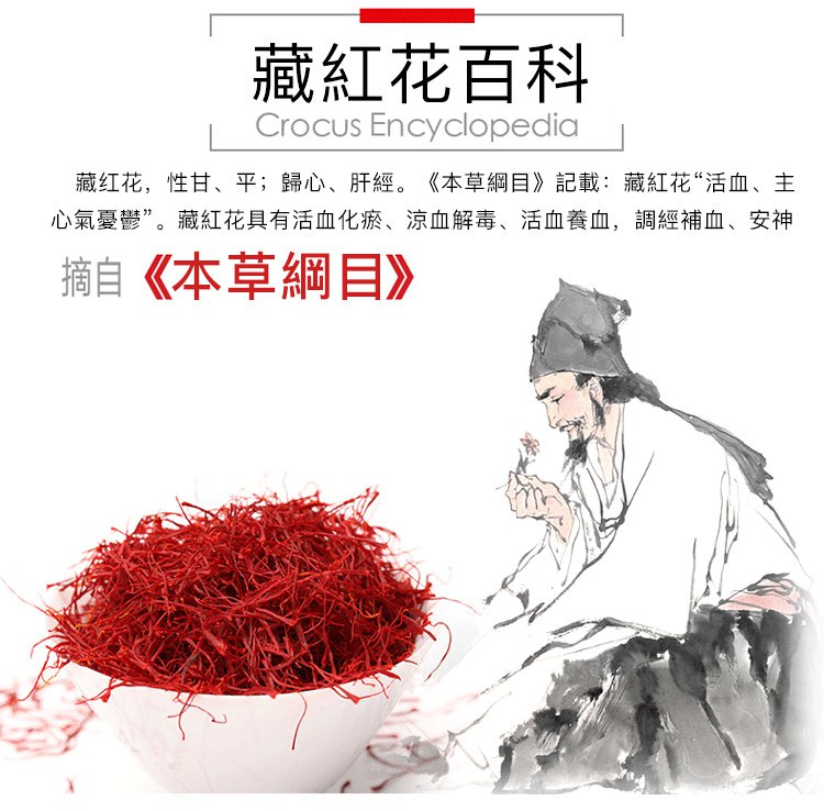 藏紅花活血化瘀、補血、養血、理血、行血,雙向調節內分泌,月經不調、量少、閉經、痛經、產後瘀血腹痛的女士服用藏紅花,能調理月經,排除子宮污血,有補氣血的作用。